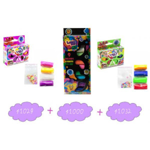 Набор включает в себя: 1) Набор для лепки 'Lovin'Do Ассорти' (9 цветов). Тесто для лепки, 9 цветов. Развивает мелкую моторику рук. 2) Тесто для лепки 'Lovin'Do Глиттер', 4 х 20 г, с декором. Тесто приятное на ощупь, нетоксичное. В наборе 4 ярких стика теста с глиттером + стикеры конфетти. 3) Тесто для лепки 'Lovin'Do Арома', 4 х 20 г, с декором и запахом. Тесто приятное на ощупь, нетоксичное. В наборе 4 ярких, стика теста + стикеры.
