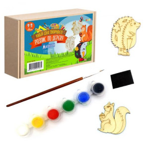 | Комплектация | деревянные заготовки - 2 шт., набор акриловых красок - 6 цветов, кисточка, магнит |