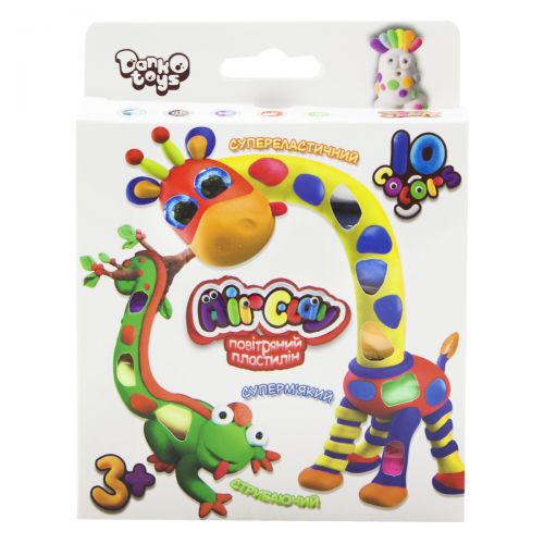 Набор для творчества 'Air Clay'. Самозастывающий пластилин очень пластичный, необыкновенно мягкий и легкий. Не прилипает к рукам одежде и мебели, обладает приятным запахом. В наборе: 10 цветов пластилина.