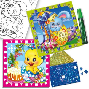Набор для детского творчества 'Блестящая мозаика'. В набор входит более 160 мягких элементов мозаики, глиттерный карандаш, две цветные картинки и раскраска.