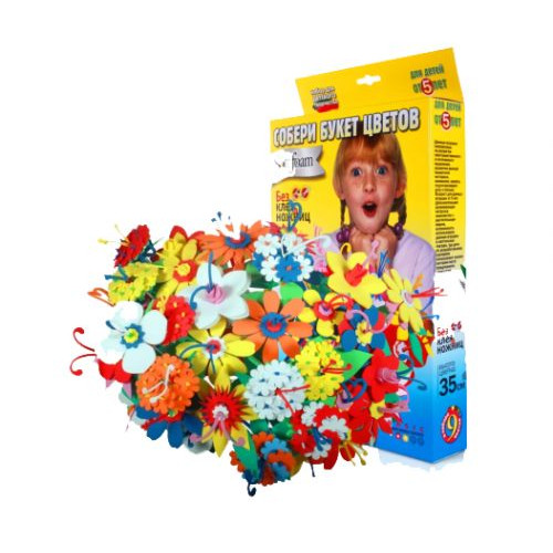 Цветы очень разнообразные, яркие и приятные на ощупь. Набор развивает творческую способность, креативность и усидчивость. Высота 35 см.