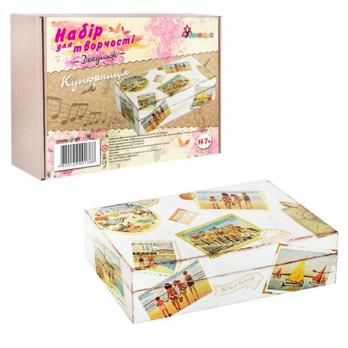 Декупажем называют технику, которая позволяет переносить готовые изображения на различные поверхности. Данный набор предлагает ребенку украсить красивым рисунком ключницу. Все что нужно для творчества уже есть в наборе.