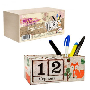 | Комплектация | заготовка из МДФ, декупажная салфетка, клей ПВА, акриловые краски, кисть для декупажа, спонж, цифры и месяцы для календаря |