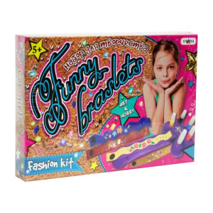 Набор для творчества 'Funny braslets' позволяет создать 12 различных красивых браслетов со стразиками, на свой вкус. В комплекте: подставка-цветочек, на которой можно украшать браслеты и расставлять все необходимые для работы компоненты, 12 основ браслетов, 4 краски, стразы и трафареты.