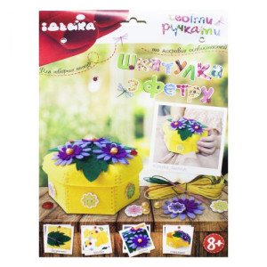 Набор для творчества из фетра поможет развивать мелкую моторику, творческие способности, концентрацию внимания. В наборе есть все необходимое для создания яркой и красивой шкатулки: фетр, нитки, пластиковая игла, бусинки для декорирования. Для детей от 8 лет.
