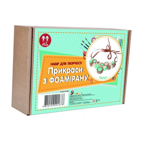 Набор для творчества 'Украшения из фоамирана. Колье' будет интересным подарком ребёнку. Можно самостоятельно украсить колье. В наборе есть: фоамиран, клей, необходимая фурнитура, выкройки, инструкция. Выполнен из качественных и безопасных материалов. Для детей от 12 лет.