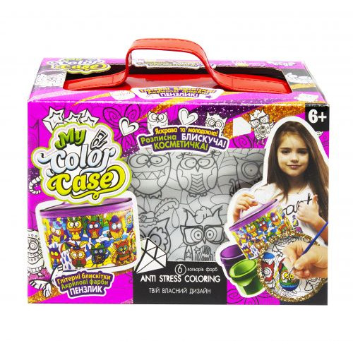 Интересный набор для творчества, который поможет развивать у ребёнка восприятие цвета, креативность, а также является отличным антистрессом. В наборе есть косметичка, которую ребёнок сможет раскрасить так, как ему нравится и украсить. Так же, есть палитра красок на 6 цветов, блесточки, акриловый лак и кисточка. Выполнен набор из качественных и безопасных материалов. Для детей от 5 лет.