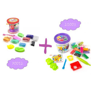 Набор включает в себя две позиции: 1)Набор легкого магического пластилина 'Moon Light Clay', 10 цветов. Предназначено для развития детских творческих способностей к лепке и моделирования. Эта масса обладает удивительными качествами, мягкая, приятная и шелковистая на ощупь и не липнет к рукам. 2 формочки и стек в комплекте. 2) Набор для лепки 'Ассорти 3' (1 л). В наборе: 15 пакетиков с тестом по 20 г, 4 цветные 3D формочки животных, нож стек. Развивает мелкую моторику рук