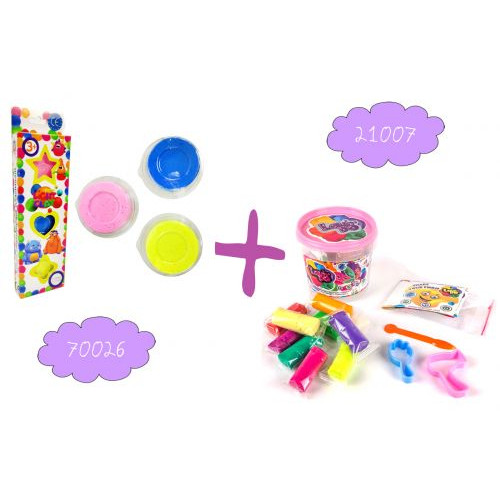 | Комплектация | 10 цветов теста, 2 формочки, стек + 3 цвета пластилина |