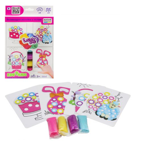 Игровой набор-мозаика с приятным на ощупь, нетоксичным тестом Lovin'Do. В комплекте есть 4 брикета с разноцветным тестом (по 20 г) и 4 карточки с примерами поделок, которые можно вылепить. На обратной стороне карточек Вы найдёте интересные и развивающие задания.