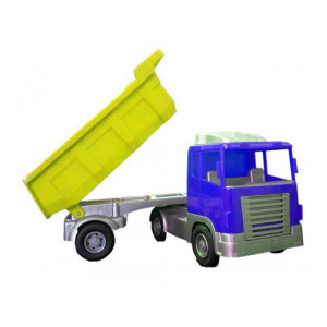 Пластиковая машинка 'Автоскрепер' с прицепом. Машинка довольно большого размера 53х21х21 см., диаметр колес - 7 см. Выполнено из качественного пластика. Для детей от 3-х лет.