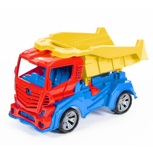 Пластиковая машинка 'Самосвал'. Довольно большого размера: 45х27х22 см., диаметр колес - 8 см. Подойдет как для игры в доме, так и на улице. Выполнена из качественного пластика. Для детей от 3-х лет.
