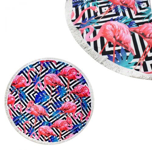 Пляжный коврик - отличный аксессуар для отдыха на свежем воздухе. Выполнен из качественного, приятного на ощупь материала. С ярким принтом, украшен бахромой. Диаметр коврика - 145 см.