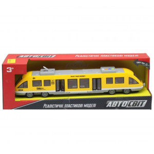 Пластиковая игрушка 'Поезд' из серии 'Автосвіт' будет интересным подарком ребенку. Инерционный. Есть световые и звуковые эффекты: звук движения транспорта, светится кабина внутри. Размер поезда - 41х9х5 см. Выполнено из качественного пластика.
