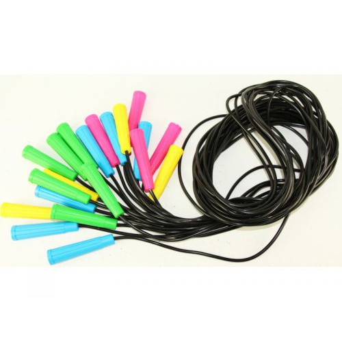 Резиновая скакалка с цветными пластиковыми ручками. Длина скакалки: 2,6 м. Разные цвета в ассортименте.