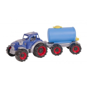 Трактор-молоковоз выполнен из крепкого пластика, который подойдет как для игры на асфальте, так и в песочнице. Молоковоз имеет два отверстия для наполнения и слива жидкости, скрепляется с трактором на задней части кузова.
