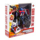 Пластиковый робот-трансформер, который может трансформироваться в технику передвижения. Высота робота 12 см., высота фигурки 14 см. Фигурка имеет подвижные части тела, также есть кнопка сзади, при нажатии на которую светится лампочка на груди.