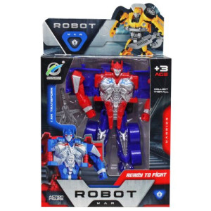Небольшая игрушка-трансформер 'Баблби'. Может трансформироваться из робота с оружием в машинку. В наборе есть небольшой пластиковый меч для робота. Размер игрушки: 12х8х4 см. Выполнен из качественного пластика. Инструкция по трансформации есть на упаковке. Для детей от 3-х лет.