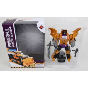 Трансформер 'Стройтехника'. Трансформируется из боевого робота в бульдозер. Множество поворотных элементов. Оружие в комплекте. 10 шагов трансформации. Собрав все 6 игрушек из данной серии, можно сложить одного, большого робота.