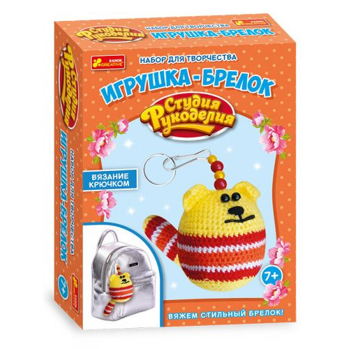 Набор способствует развитию навыка техники вязания крючком. С помощью него можно связать милую игрушку-брелок. Комплектация: заготовки из фетра, нитки для вязания, крючок, синтепон, бусины, нитки для шитья, иголка, кольцо, застежка-карабин.