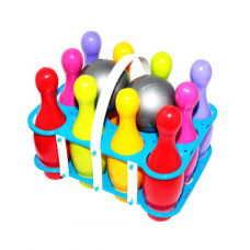 Яркий пластиковый набор для боулинга. В комплекте: 10 красочных разноцветных кеглей, 2 шара для боул..