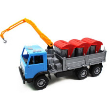 Машинка 'КАМАЗ: Мусоровоз' с манипулятором. В наборе, кроме машинки, есть 3 мусорных бака. Машинка и..