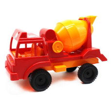 Пластиковый грузовик - бетономешалка. Кузов машины подвижный, барабан вращается. Размер игрушки 35х2..