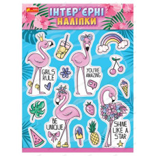 Набор ярких красочных наклеек с изображением красивых фламинго. Наклейки большого размера и хорошо к..