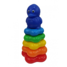 Детская пирамидка №3. Яркая пластиковая пирамидка, состоящая из основы и четырех колец с птичкой. И..