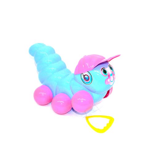 Пластиковая каталка в виде гусеницы с ручкой на верёвочке. При движении - крутятся 'лапки-колёсики'.