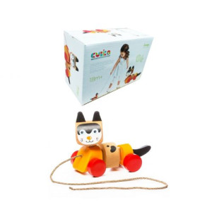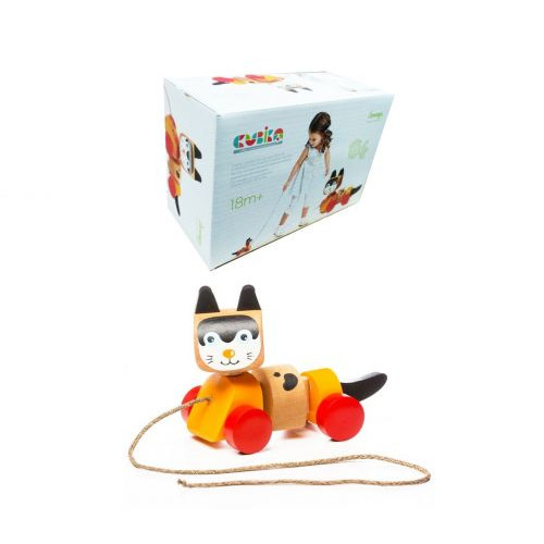Котик-каталка. Состоит из нескольких подвижных деревянных фрагментов, соединенных между собой. На шнурочке.