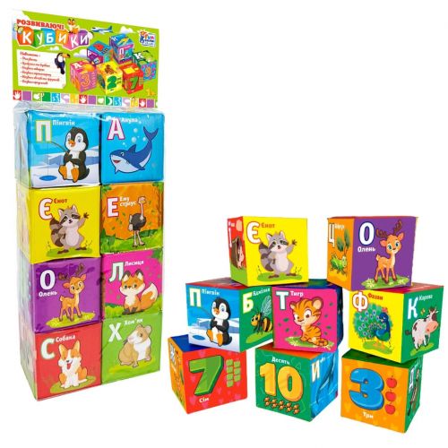 Кубики 40413 4FUN Game Club Тварини 6 штук мʼякі водонепроникна тканина літери геометричні фігури в пакеті