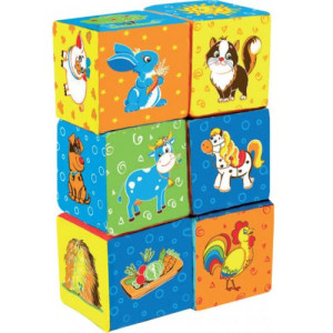 Мягкие кубики с яркими, красочными рисунками помогут ребенку познакомится, в игровой форме, с домашними животными. Размер кубика - 8х8х8 см. В наборе 6 кубиков.