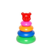Яркая пластиковая пирамидка. Состоит из основы, 5 разноцветных колец и верхушки в форме головы медве..