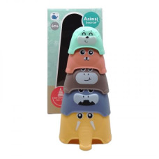 Набор из 5 разноцветных чашек в форме веселых животных разного размера, из которых можно построить п..