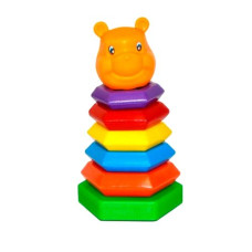 Пирамидка на основе, 6 колец шестиугольников, верхушка медведь. Пластик...