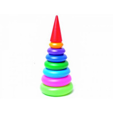 Яркая пластиковая пирамидка 'Конус'. Состоит из 7-ми колец разного размера и верхушки в форме конуса..