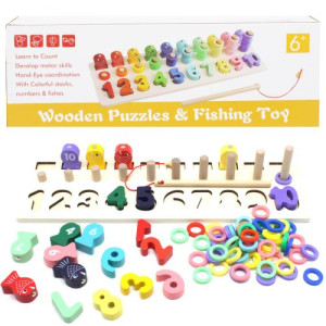 Деревянная обучающая игра-сортер 3в1. Набор включает в себя пирамидку из колечек, цифры (до 10) и рыбалку. Рыбки выполнены с магнитным элементом, в наборе также есть удочка с магнитным крючком. Главной целью игры является найти для каждого элемента соответсвующее отверстие и соотнести детали по цветам. Игра помогает развить мелкую моторику рук, логику, поможет выучить цвета и цифры. Выполнена из безопасных материалов. Для детей от 6-ти месяцев.