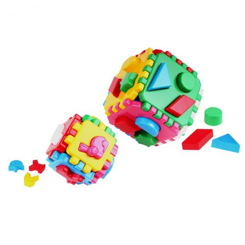 Кубик- пазл-сортер 1+1 (36 деталей, геометрические фигурки 16 шт., фигурки животных 6 шт.). Пластик.