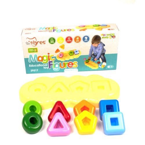 Игрушка развивающая 'Магические фигурки', 8 элементов, 4 формы. Играя, ребенок сможет изучить простые фигуры и цвета, подбирая соответствующее отверстие для размещения фигурки. Размер фигурки - 7 х 7 см.