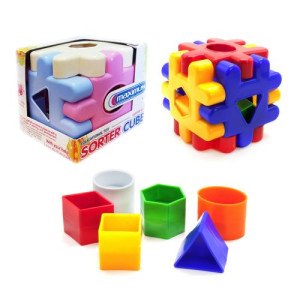 Сортер куб с геометрическими фигурами. Сортер - это игрушка, цель которой правильно соотнести фигурки в форме различных геометрических фигур с прорезями на гранях куба. 2 вида в ассортименте.