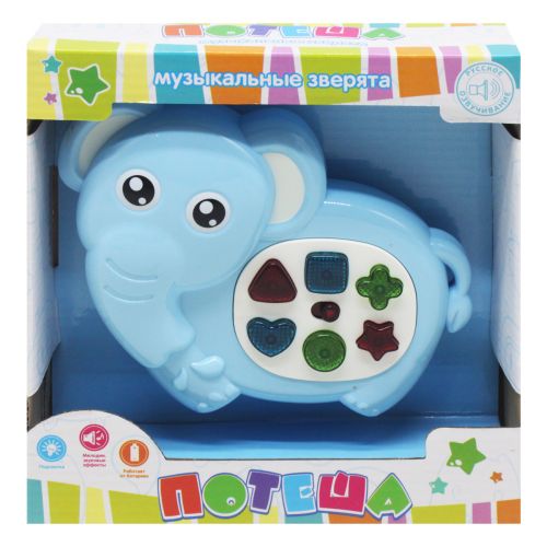Интерактивная игрушка 'Слоник'. Игрушка озвучена на русском языке. Обучающая игрушка воспроизводит: веселые мелодии, цифры от 1 до 5, озвучивает геометрические фигуры, рассказывает интересные факты. Есть разноцветная подсветка кнопочек. Игрушка развивает память, мелкую моторику, цветовое и сенсорное восприятие.