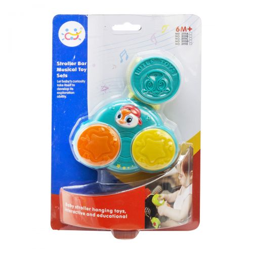 Яркая и интересная музыкальная игрушка. Есть световые и звуковые эффекты: светится, есть 5 разных мелодий, которые можно переключать при помощи кнопки. Так же, к игрушке прикреплена прищепка. Выполнена из качественных и безопасных материалов. Для детей от 6 месяцев.