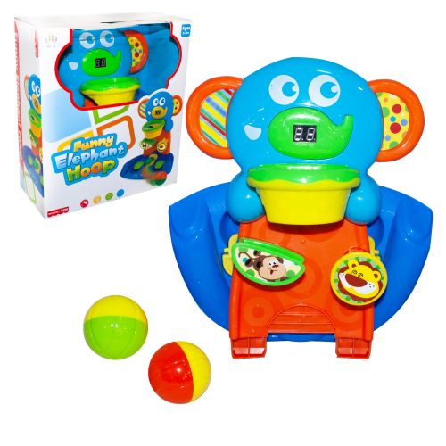 Логика слоник 'Funny elaphant hoop'. Цель игры: попасть мячиком в кольцо и заработать как можно больше баллов ( на слонике есть счетчик). Материал: пластик. Упаковка: коробка.