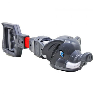 Интересная игрушка выполнена в виде слоника, который умеет захватывать предметы ртом. При нажатии на специальный механизм на ручке, слоник открывает и закрывает рот. Игрушка может захватить не очень тяжелые предметы. Размер игрушки 35х11х9 см.