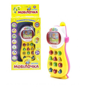 Телефон 'Сообразительная мобилочка'. Развивающая игрушка, которая будет развивать мелкую моторику рук, тренирует слуховое восприятие (при нажимании на кнопку, озвучивает нанесенные на нее буквы и цифры), зрительное восприятие, развитие разговорных навыков (в процессе игры запоминаются алфавит, цифры, цвета и названия простых фигур)