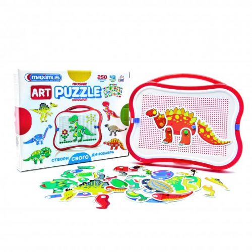 Настольная игра 'Развивайка'. Мозаика с пазлами 'Динозаврики' (43 детали пазлов). В комплекте: 250 деталек мозаики; поле для мозаики (размер: 29х20,5 см.). Выполнено из качественного пластика. Для детей от 3-х лет.