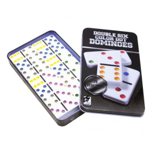 Домино — настольная игра, в процессе которой выстраивается цепь костяшек («костей», «камней»), соприкасающихся половинками с одинаковым количеством точек, обозначающим число очков. Упакован набор в металлический футляр.