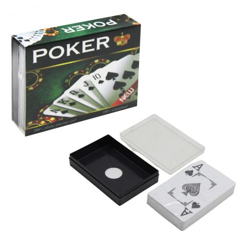 Колода карт для игры в покер. Выполнены из качественного, прочного пластика. Упакованы в компактную пластиковую коробочку.