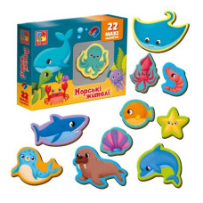 Магниты 'Мой маленький мир: Морские жители'. Набор из 22 магнита разной формы для игры на холодильни..